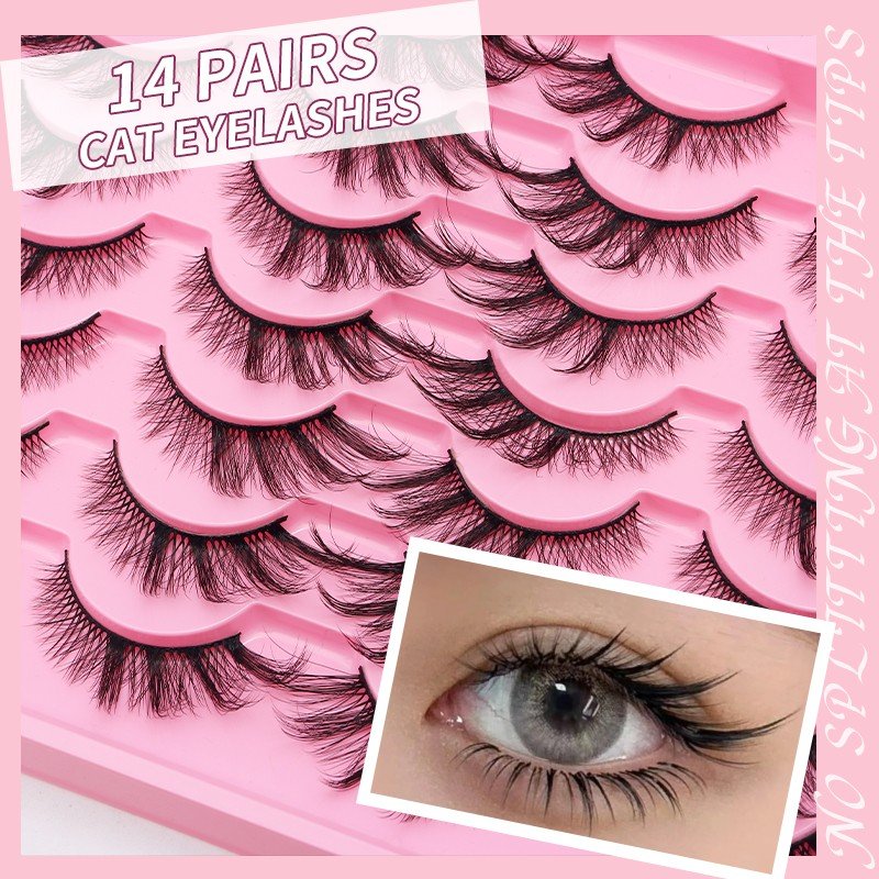 14 Pairs Cat Eye Lashes with Colored Rectangle-Tray Strip Lashes M032